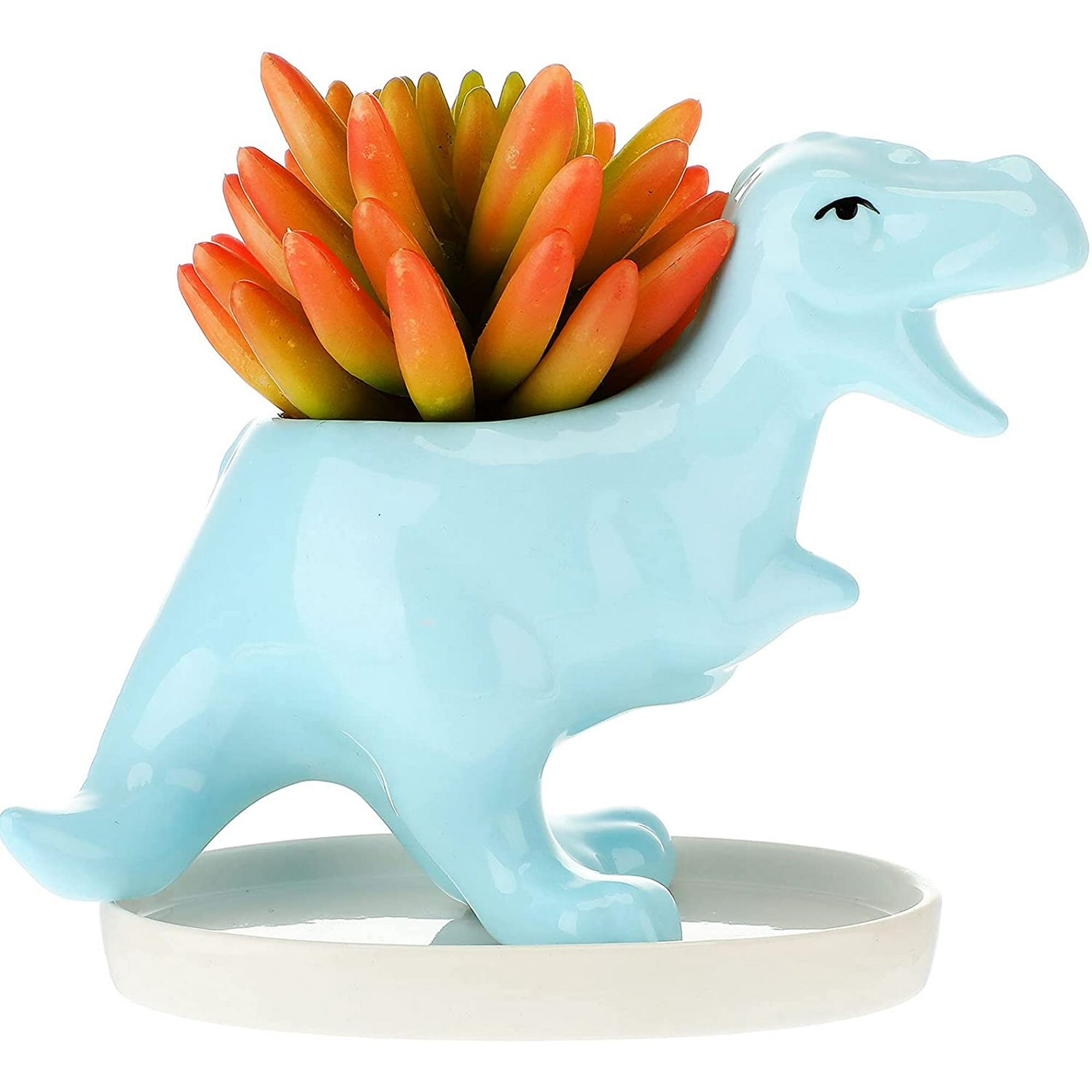 Dinosaur Shaped Flowerpot Fleshy Ceramic Flower Pot Animal Creative Plant Flowerpot With Drain Hole And Tray For Home Garden Office Table Decoration Supplies Blue Walmart Canada